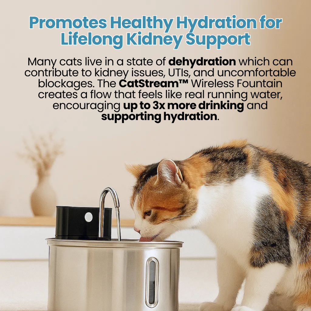 Every sip of water your cat takes can help or harm their health. The CatStream™ Wireless Fountain keeps them hydrated, happy and healthy. It delivers pristine ultra-clean water while being effortless to refill clean and maintain.